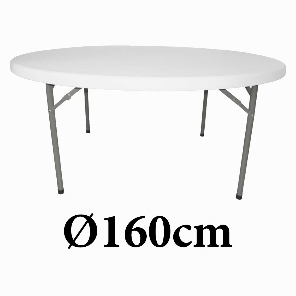 Πτυσσόμενο τραπέζι Catering Ροτόντα, στρογγυλό τραπέζι από πλαστική (Πολυαιθυλένιο) επιφάνεια με ειδική κατασκευή σάντουιτς για μικρό βάρος και μεγάλη αντοχή. Τα πόδια είναι από ατσάλι βαμμένο ηλεκτροστατικά σε φούρνο.